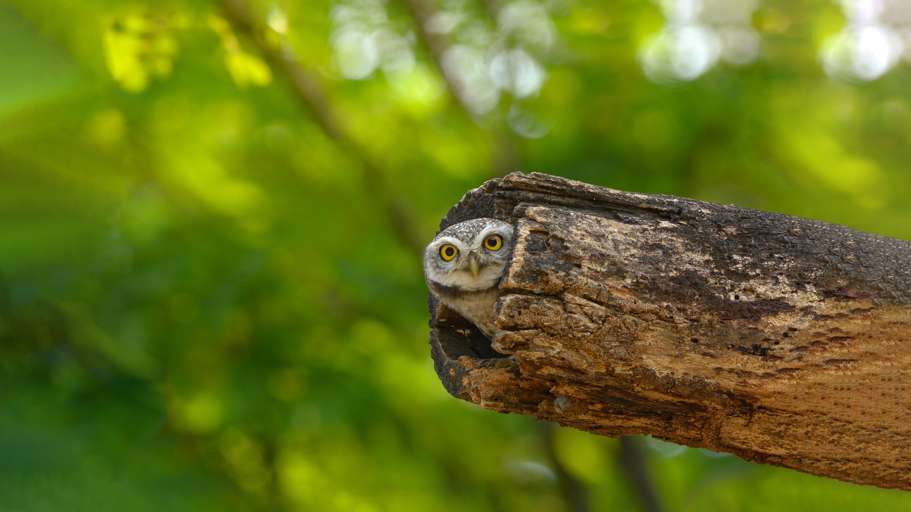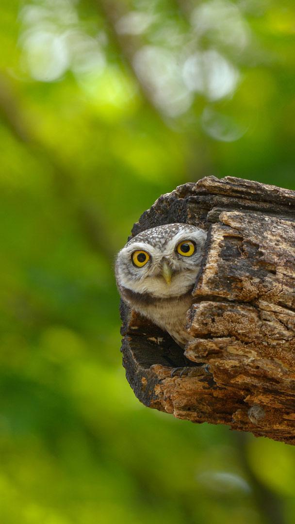 Think you can win a staring contest with one of these? With piercing yellow eyes against a grey-brown face, spotted owlets are often seen when small birds spot them during the day and mob them. Once located, these primarily nocturnal owls will often stare down at intruders, bob their heads and emit a loud "chirurrr-chirurrr-chirurrr" screech, or what"s sometimes described as laughter or chuckling.