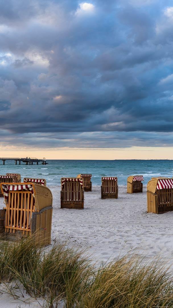 Did you know that the first beach chairs were developed in the 19th century to protect against the fine sand and wind? Beach chairs have a special charm even in stormy weather, as in the picture today in front of the pier on Steinwarder in Heiligenhafen, Germany. Steinwarder, a picturesque peninsula, was originally only connected to the mainland by salt marshes and the Eichholz lowlands. Today, it is a paradise for vacationers seeking peace and nature.