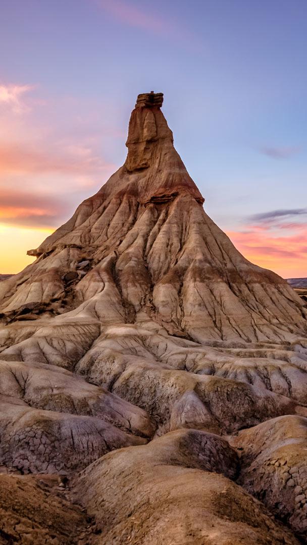 In the heart of the Bardenas Reales of Navarre, a unique semi-desert landscape in Spain, rises Castildetierra, the most iconic rock formation in the area. Its silhouette, reminiscent of a natural tower eroded by wind and water, is a symbol of this territory declared a Biosphere Reserve by UNESCO.
