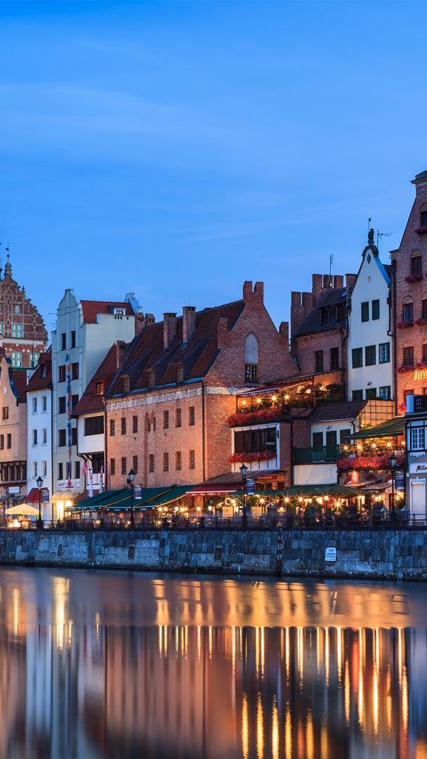 Where cobbled charm meets coastal cool, Gdańsk is a dynamic city in Poland"s Pomorskie province. It is part of Tricity—a metropolitan area along the Gdańsk Bay that includes the neighbouring coastal cities of Sopot and Gdynia, along with nearby towns. The city likely takes its name from "Gdania", an earlier name for the Motława river that runs through it.