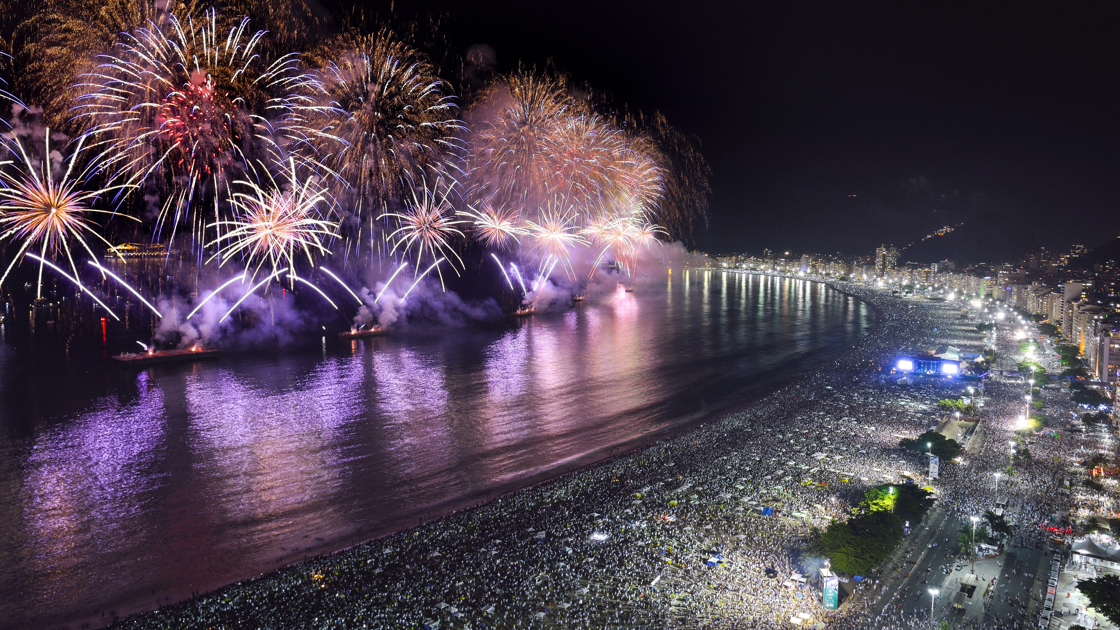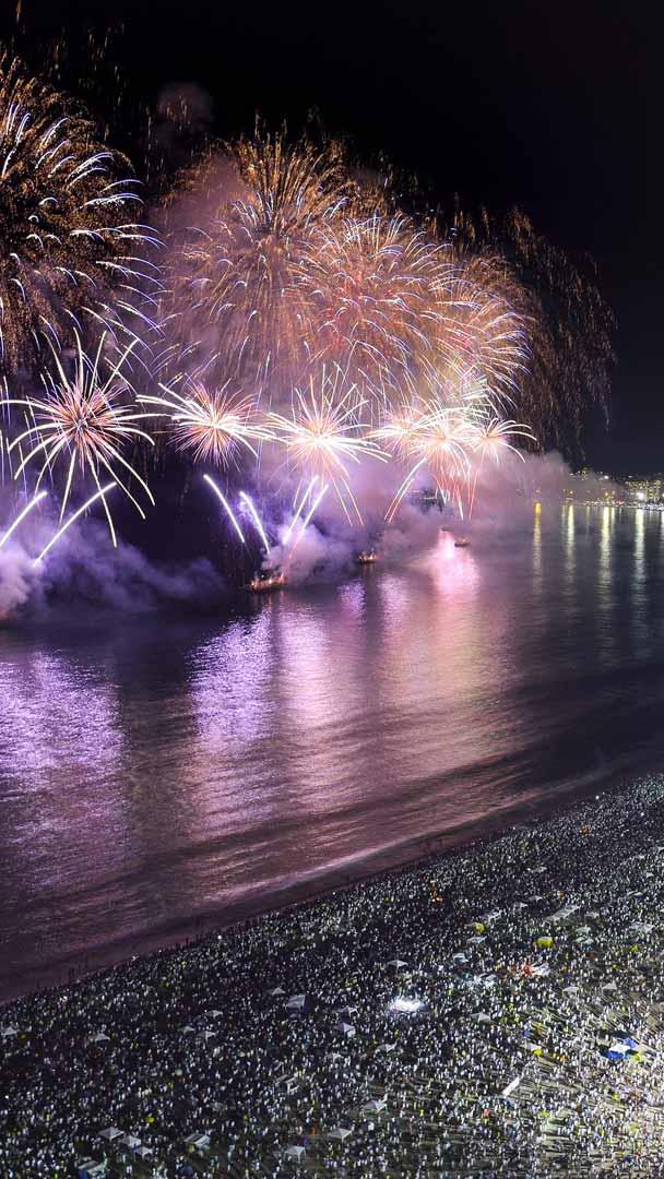 Até o próximo ano! Fogos de artifício na festa de Ano Novo na praia de Copacabana (© Pulsar Imagens/Alamy)