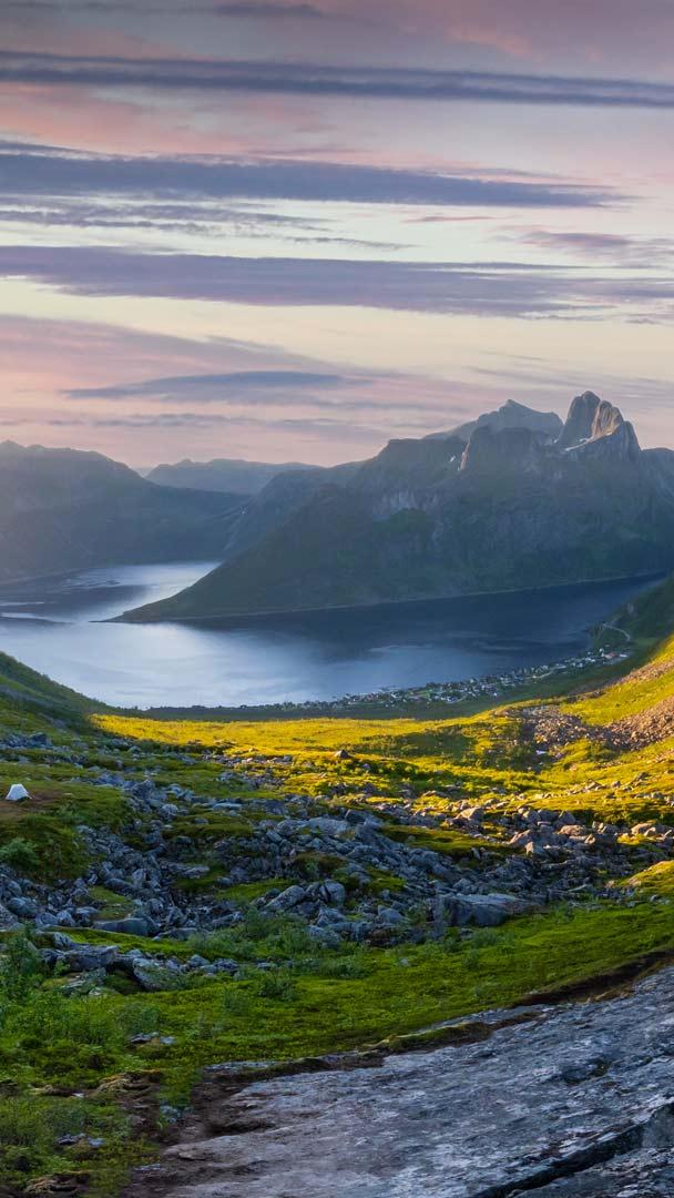 Uma criação digital? Noruega! Monte Segla, Ilha Senja, Troms e Finnmark, Noruega (© imageBROKER/Moritz Wolf/Getty Images)