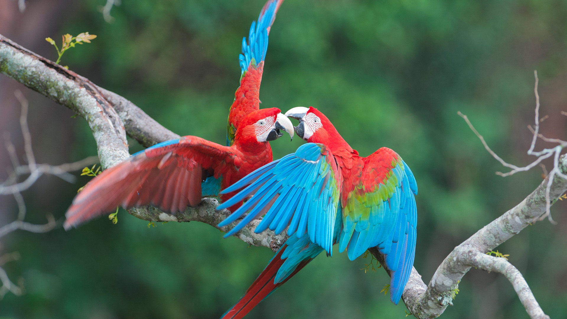 O amor está no ar! Araras-vermelhas no Buraco das Araras, perto de Bonito, Mato Grosso do Sul, Brasil (© Schafer & Hill/Getty Images)
