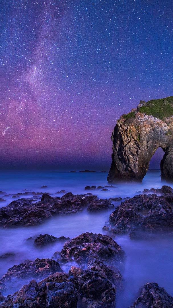 A pedra que tem sede do mar Via Láctea sobre a Horse Head Rock, Nova Gales do Sul, Austrália (© Philip Thurston/Getty Images)