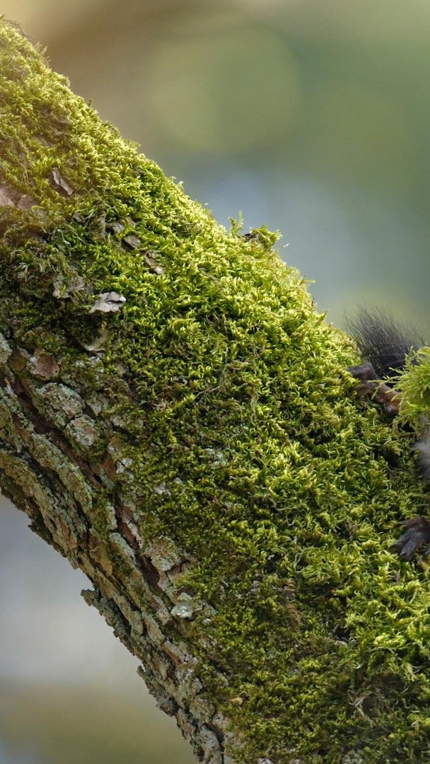 Um semeador involuntário Fêmea de esquilo-vermelho-eurasiático carregando musgo, Suíça (© Jean-Luc and Francoise Ziegler/Minden Pictures)