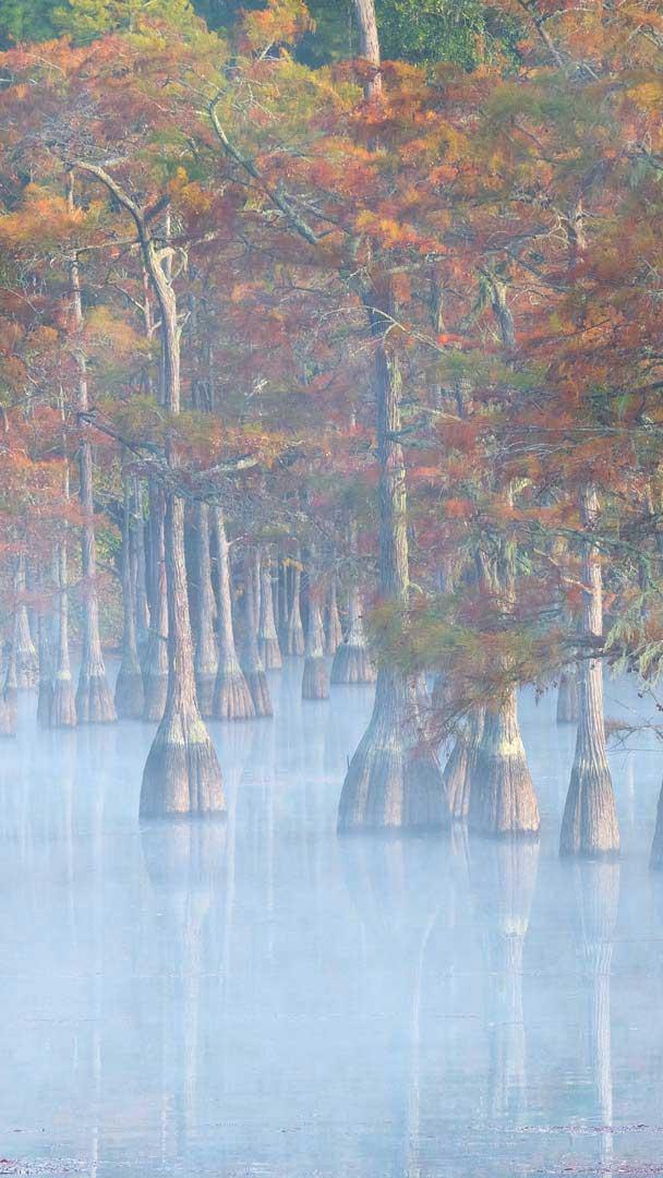 Ever seen the sturdy, swamp-loving and always stylish cypress? These trees can grow to over 25 metres and usually have a pyramid-like shape when they"re young. In today"s image, we"re transported to the George L. Smith State Park, which spans 6.61 square kilometres in Emanuel County, Georgia, United States. The park"s centrepiece, seen in today"s image, is a 1.67 square kilometre mill pond, a favourite spot for fishing and canoeing. Out of its waters grow pond cypress and bald cypress trees, two varieties that are native to the country. Winding through the park are over 11 kilometres of nature trails, leading visitors through sandy landscapes past a bird sanctuary and tortoise habitat.