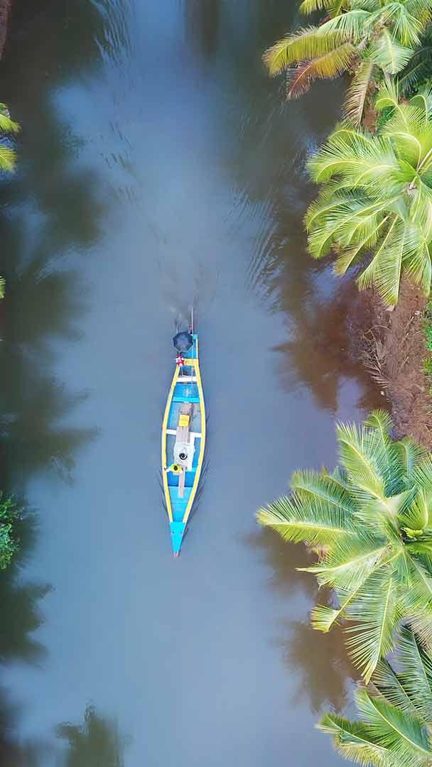 God’s Own Country Aerial view of a boat in Kerala, India (© Ebin Francis/Shutterstock)