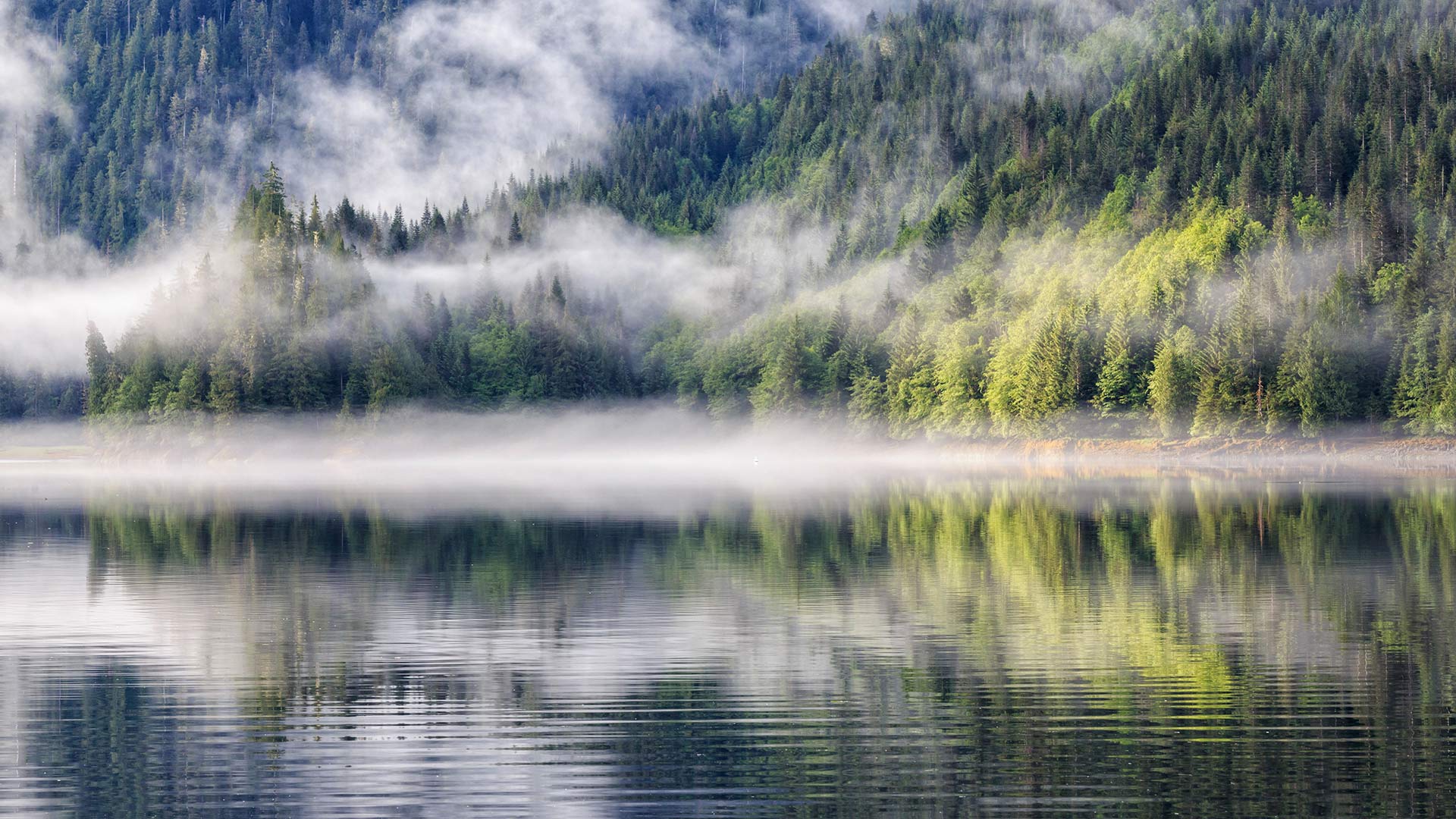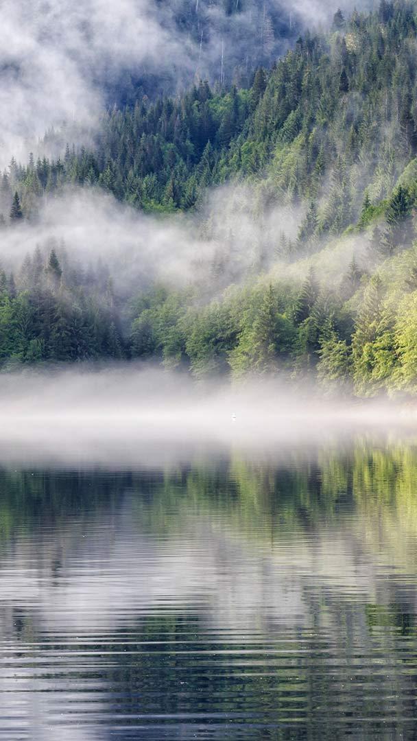 A grizzly bear sanctuary Fjord with fog, Khutzeymateen Provincial Park (© Westend61 GmbH/Alamy)