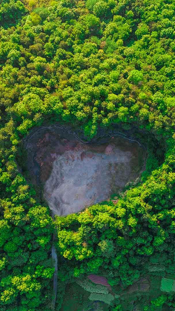 最浪漫的中国传统节日 上海浦东森林心形洞穴鸟瞰图,中国 (© Yaorusheng/Getty Images)