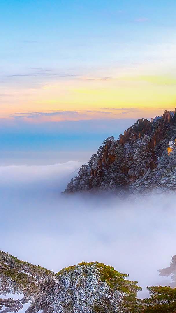 冬日里的壮丽美景 黄山的日落,安徽省,中国 (© Nantapon Pattamakijsakul/Getty Images)