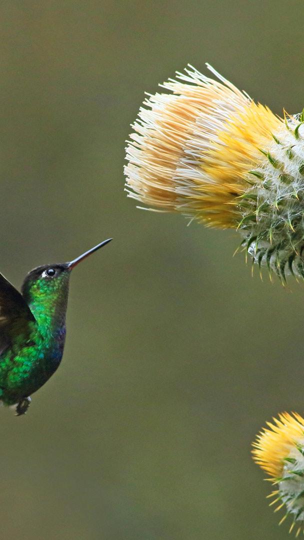 传播花粉 绿顶辉蜂鸟与巨型蓟,穆埃尔特山,哥斯达黎加 (© adrian hepworth/Alamy Stock Photo)