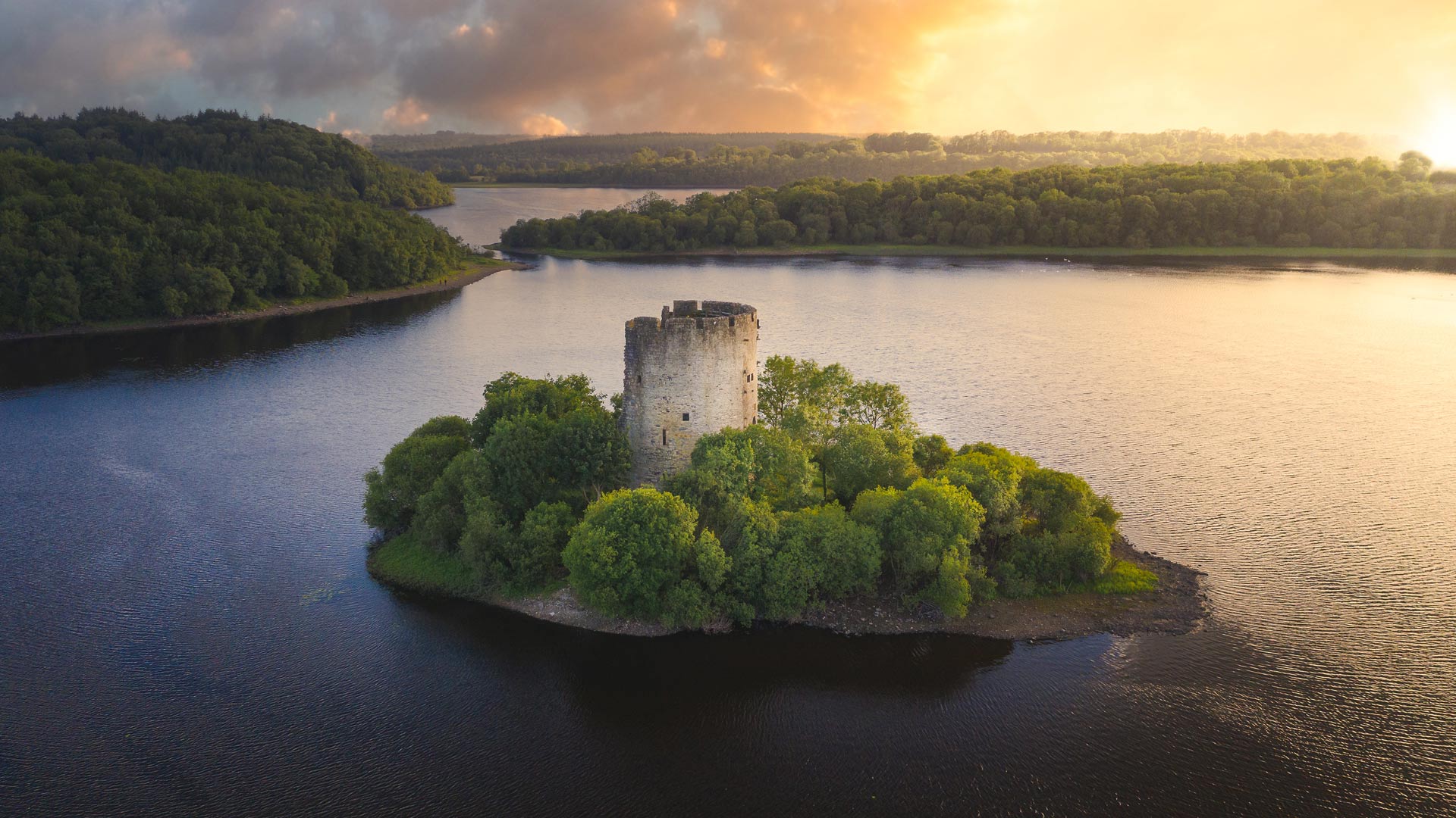 Eine Burg mitten in einem See Cloughoughter Castle in Lough Oughter, Grafschaft Cavan, Irland (© 4H4 PH/Shutterstock)