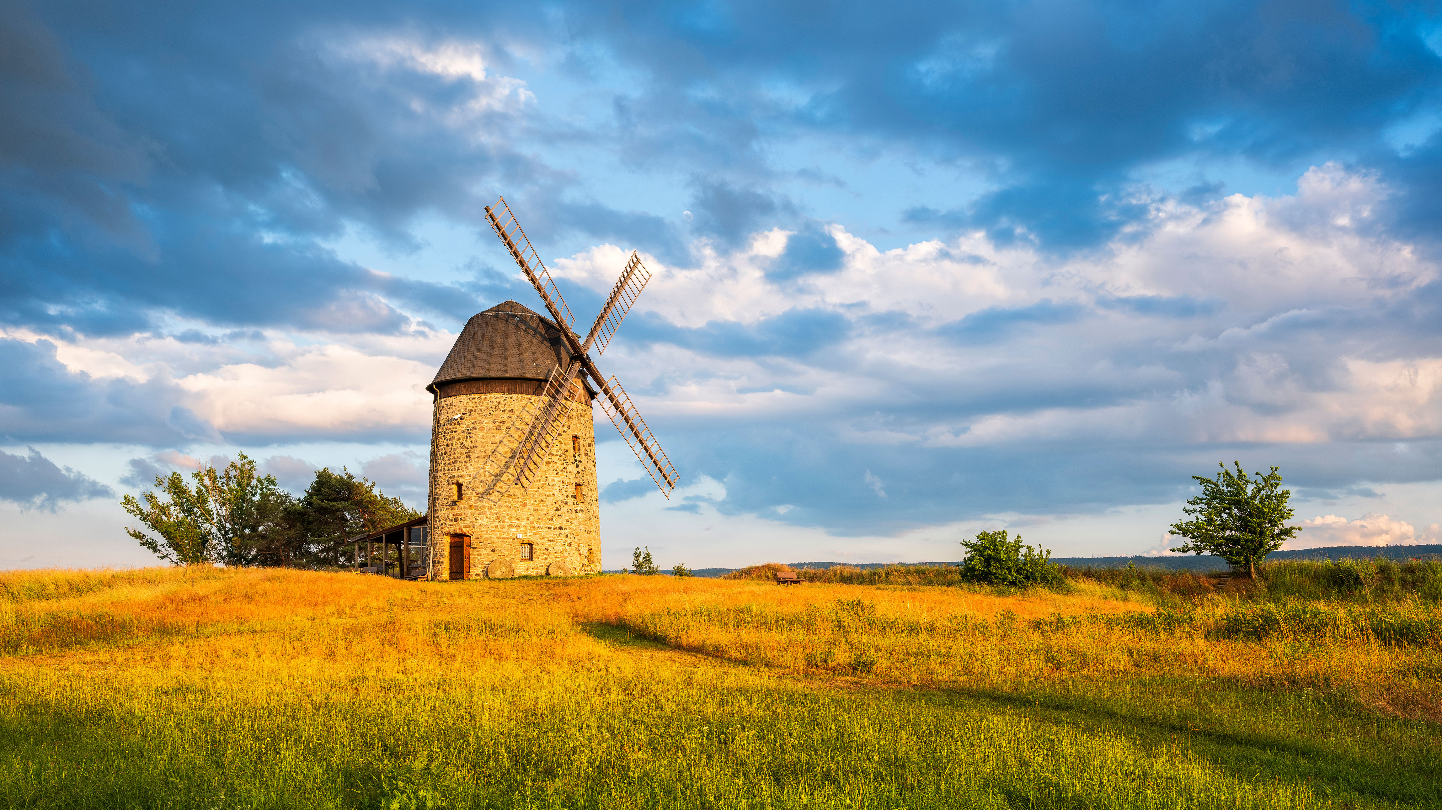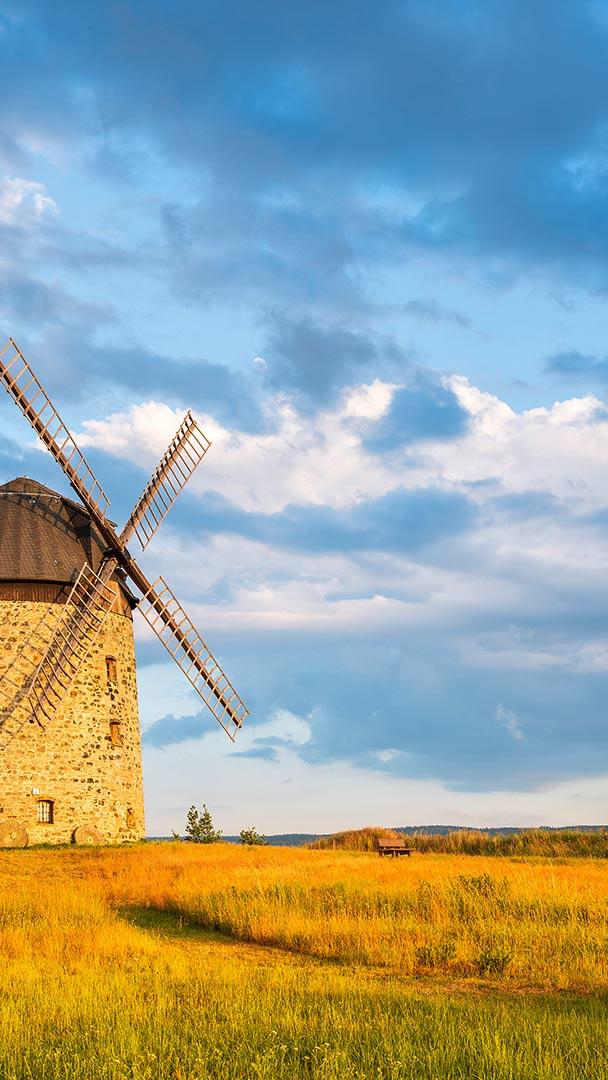 Wunderschönes Wahrzeichen Warnstedter Mühle im Sonnenuntergang, Thale, Harz, Sachsen-Anhalt (© Andreas Vitting/eStock Photo)