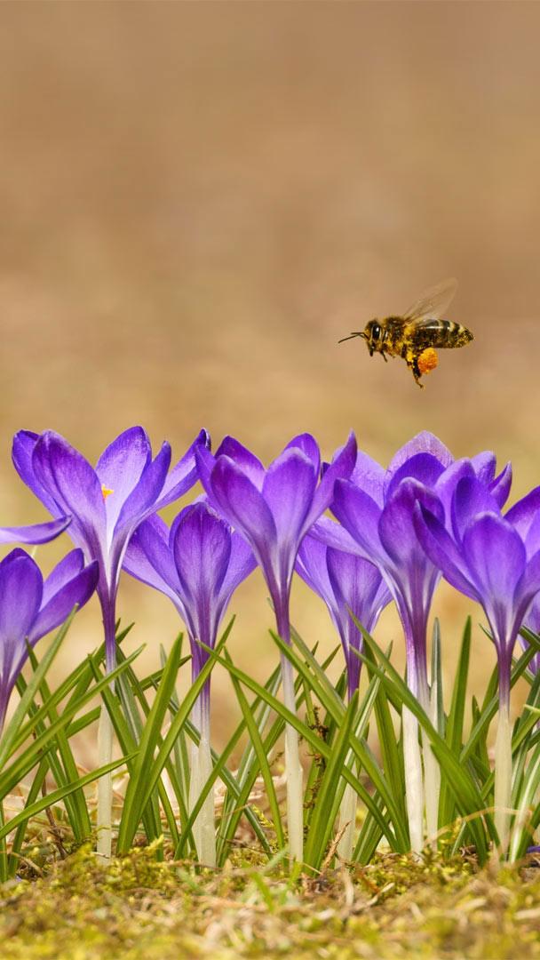 Ausflug zu den Krokussen Honigbiene im Anflug auf Krokusblüten, Tatra, Polen (© MirekKijewski/Getty Images)