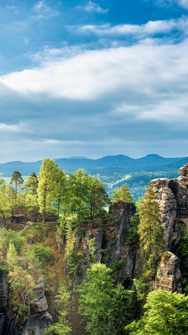 Elbsandsteingebirge und Basteibrücke im Nationalpark Sächsische Schweiz, Sachsen © Harald Nachtmann/Getty Images