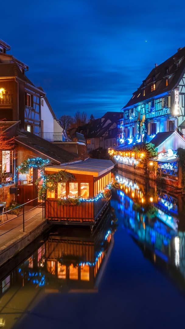 Chaque hiver, Colmar se transforme en un véritable tableau de Noël. Son marché, vieux de plusieurs siècles, fait partie des traditions les plus chères aux Alsaciens. Depuis le XVIIe siècle, l’Alsace a su préserver l’art du marché de Noël et Colmar en est l’un des joyaux. En arpentant les rues de cette cité médiévale, on découvre la place Rapp illuminée, avec sa patinoire et ses échoppes regorgeant de créations artisanales. Chaque allée révèle des trésors : des décorations faites main aux gourmandises locales, un hommage à l’artisanat alsacien.
