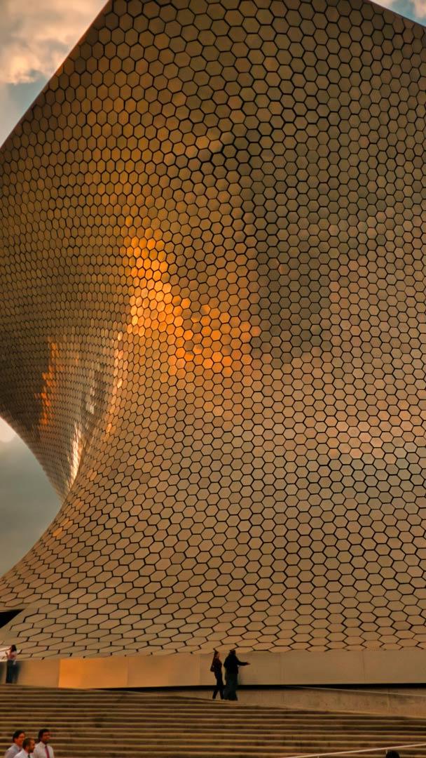 La lumière du soleil transforme largent en or Plaza Carso, musée Soumay, ville de Mexico, Mexique (© Juan Romero/Alamy)