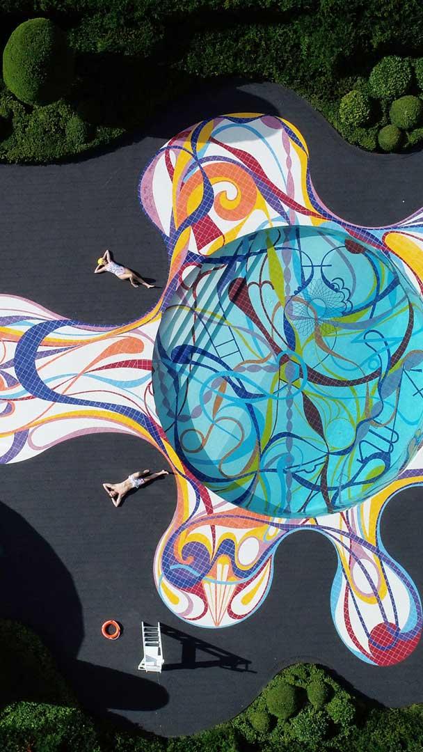 Un grand bain d’art contemporain ! Piscine "Gateway" du parc d’Art Jupiter Artland, Édimbourg, Écosse (© Owen Humphreys/PA Images/Alamy)