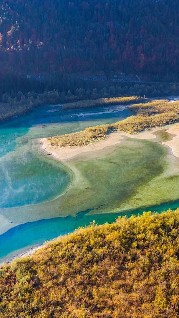 De l’eau d’Allemagne Vue aérienne de l’Isar se déversant dans le réservoir de Sylvenstein, Isarwinkel, Lenggries, Allemagne (© Martin Siepmann/Offset/Shutterstock)
