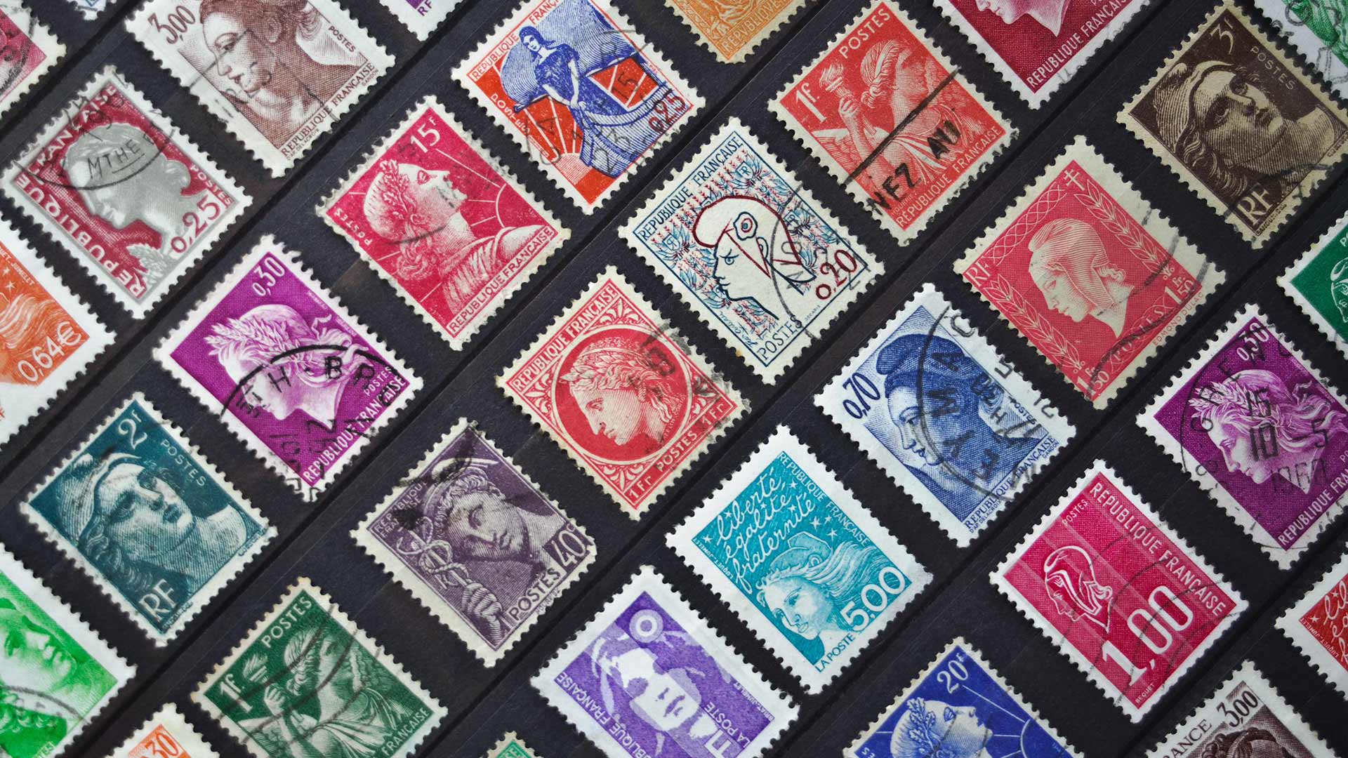 La belle Marianne Collection de timbres représentant Marianne, symbole de la République française (© Virginie Schleiermacher/Alamy Stock Photo)