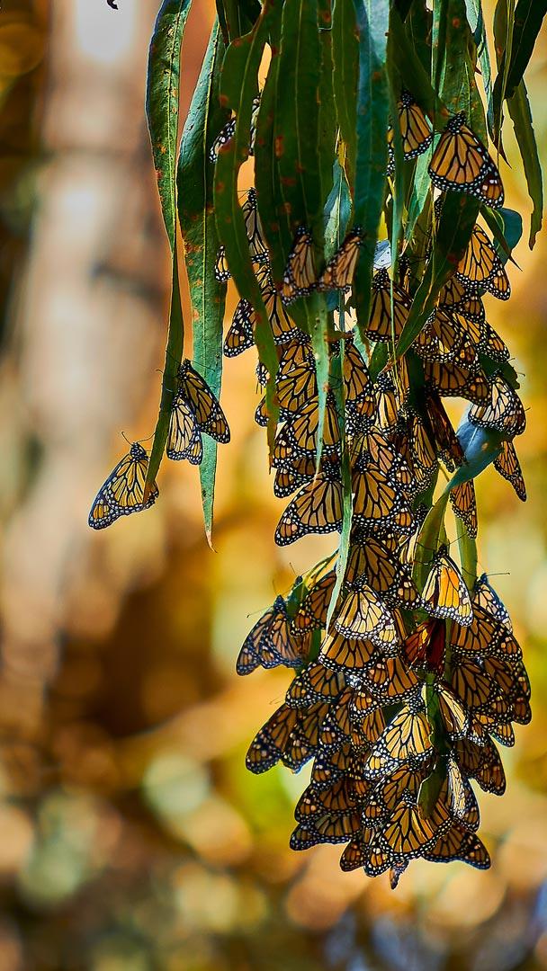 Monarch butterflies, with their vibrant orange and black wings, are found across southern regions, from coastal meadows to urban gardens. They gracefully descend upon Southern California, gathering in large numbers on eucalyptus trees. The best place to spot these insects is in the city of Goleta, situated in southern Santa Barbara County. Those gathered to see the clumps of butterflies in 30-metre-tall trees might confuse them for clumps of leaves, however, as the sun"s rays gently fall upon the insects, their wings will begin to flutter. Bring your binoculars and take the opportunity to witness these winged wonders huddled together, it"s truly a sight to behold!