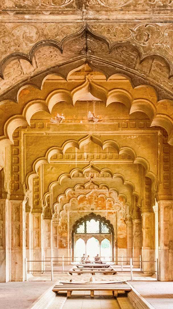The Royal touch Ornate arcade at the Red Fort of Delhi, India (© Andrew Palmer/Alamy Stock Photo)