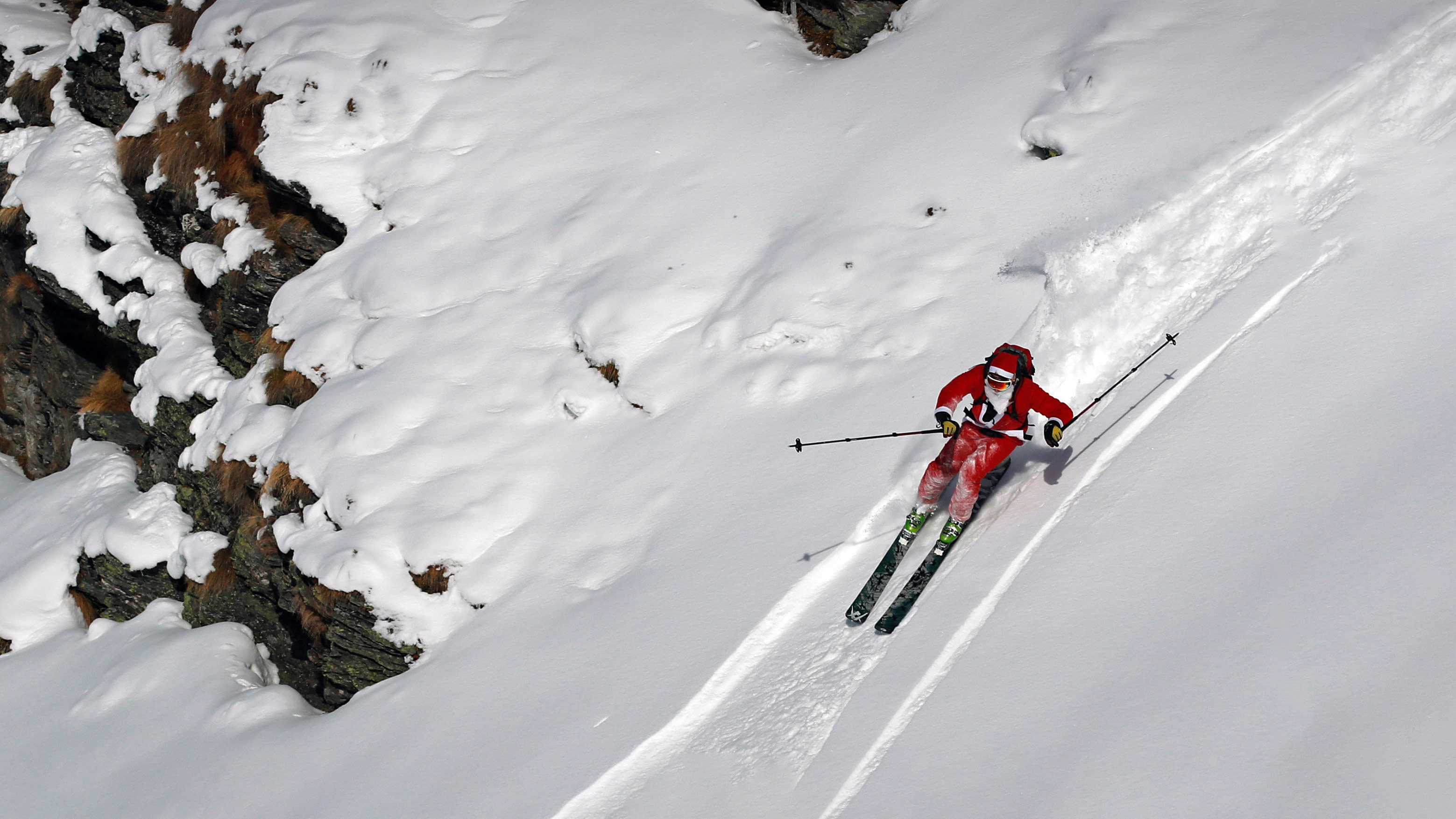Santa slalom Saint Nicholas Day in Verbier, Switzerland (© Denis Balibouse/Reuters)