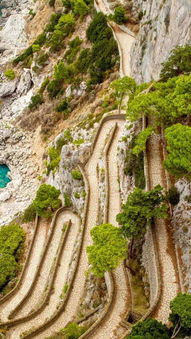 Via Krupp, a historical pathway on the island of Capri, Italy, is renowned for its dramatic serpentine design. Constructed between 1900 and 1902 by the German industrialist Friedrich Alfred Krupp, the footpath connects the town of Capri to Marina Piccola beach, which allowed Krupp to access his private properties back in the day. The pathway"s intricate layout, with its sharp turns and steep inclines, was an engineering marvel of its time. Via Krupp"s panoramic vistas of the Tyrrhenian Sea, the Faraglioni rock formations, and the lush landscape of the island have drawn admiration for generations. Due to concerns over preservation and safety, because of falling rocks, the pathway has faced intermittent closures, though it reopened in June this year for the first time in nine years.
