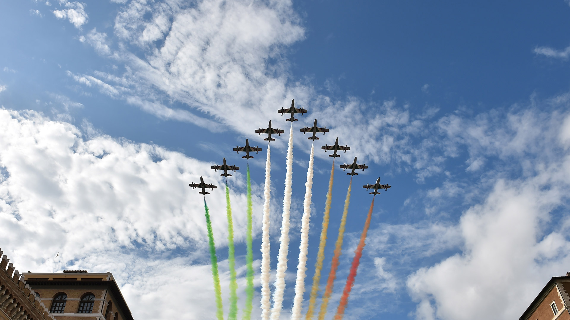 Una giornata storica! Frecce Tricolori in volo, Giornata della Liberazione, Roma (© Marie-Laure Messana/Getty Images)