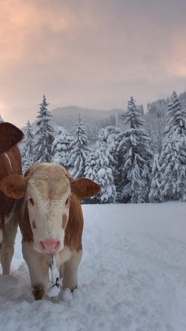 Calore tra i fiocchi? Mucche in una valle alpina a Santa Maddalena, Val di Funes, Dolomiti, Italia (© Smelov/Shutterstock)