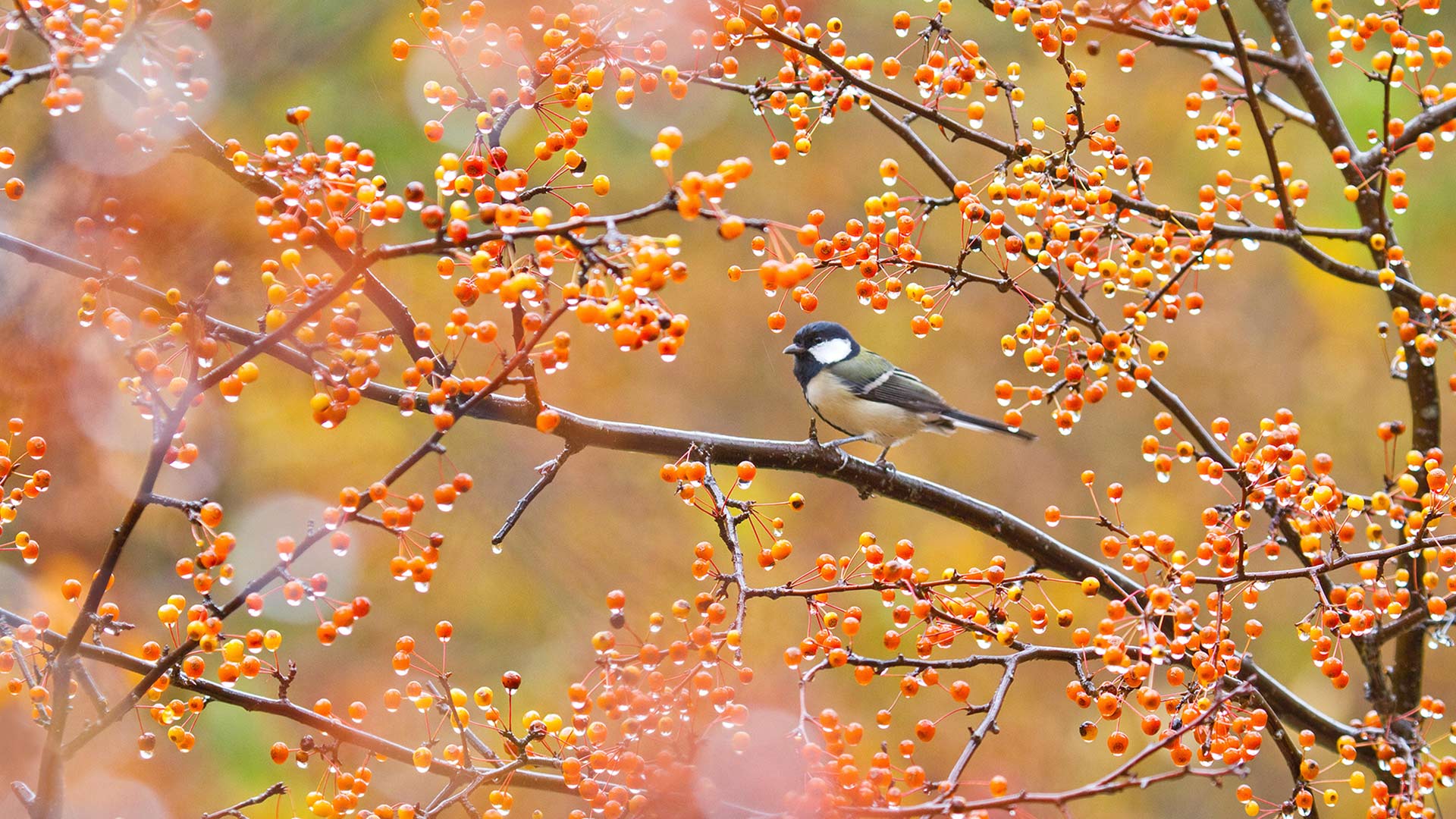 今日は「立冬」 赤い実をついばむシジュウカラ (© Aflo Co., Ltd./Alamy Stock Photo)