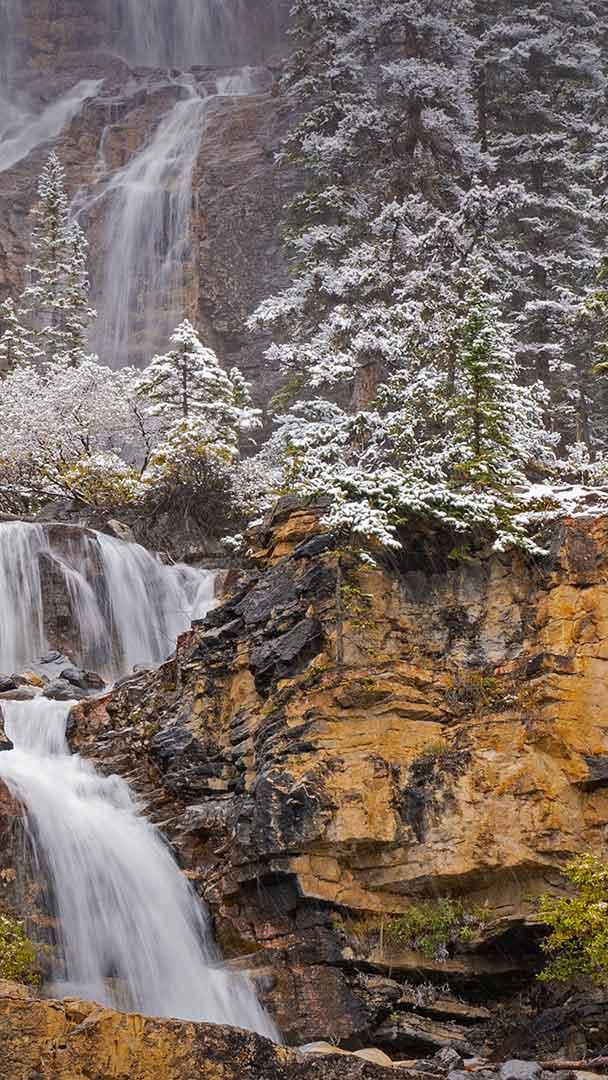 Rocky Mountain run-off Tangle Creek Falls in Jasper National Park, Alberta, Canada (© Jeff Foott/Minden Pictures)