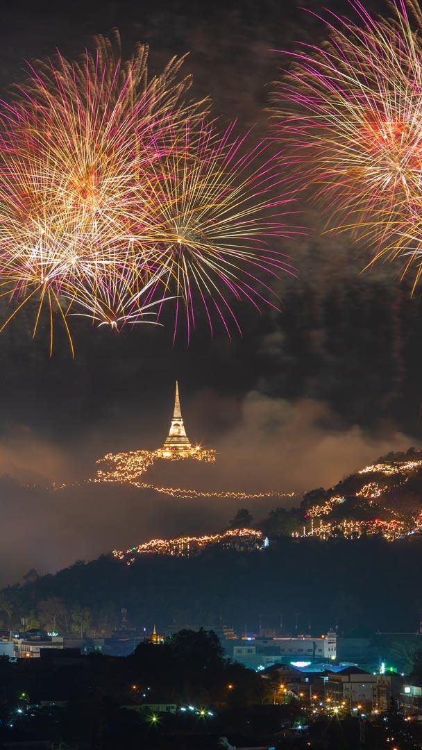 It"s time for the final countdown! New Year"s Eve is celebrated tonight in many countries to see out the old year and hope for the promises of the new one. The traditions of different nations can be quite creative when it comes to saying farewell to the year. If you"re not in the United Kingdom greeting the arrival of midnight with the chimes of London"s Big Ben, you might watch the Times Square Ball Drop in the United States, smash crockery in Denmark, stuff your mouth with grapes for the countdown in Spain or hang onions outside your door in Greece. Celebrators in Thailand might visit a temple for good luck or watch the fireworks illuminating Phra Nakhon Khiri, also known as "holy city hill," based in the historical park of the same name. Wherever you celebrate, have a great one. See you next year!