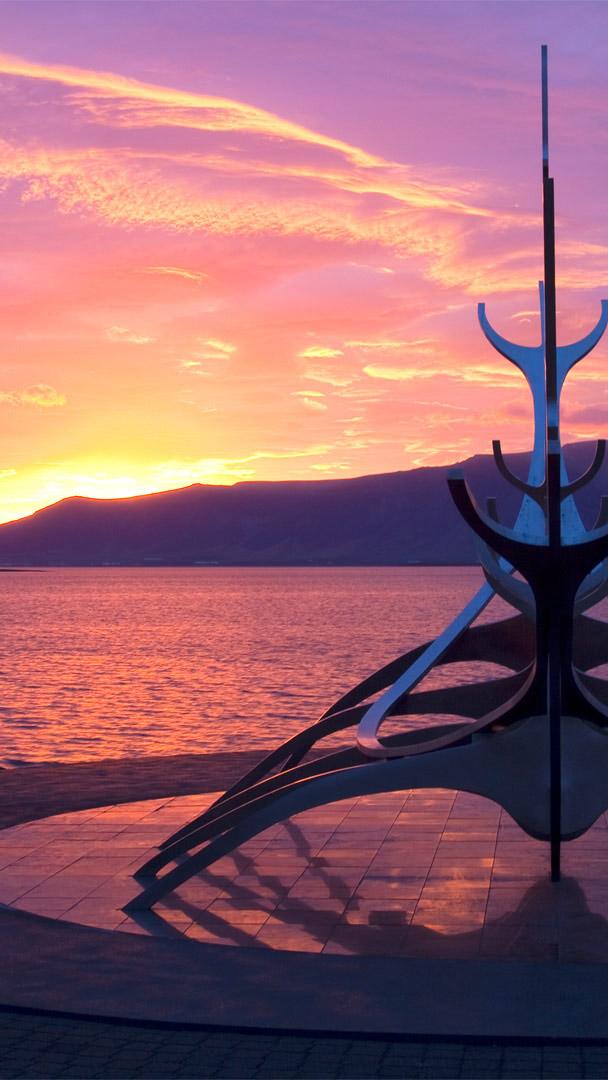 Today marks the summer solstice in the Northern Hemisphere—the longest day of the year and, for most of us on this side of the globe, the first official day of summer. (Iceland, being Iceland, celebrates the first day of summer in April, an old Viking tradition.) What better way to celebrate this day of sun than with Reykjavik’s Sun Voyager. Though it looks a bit like a Viking ship or maybe a fish skeleton, sculptor Jón Gunnar Árnason created it to be a dream boat and an ode to the sun. Sounds good to us. Join us in celebrating the sun today.