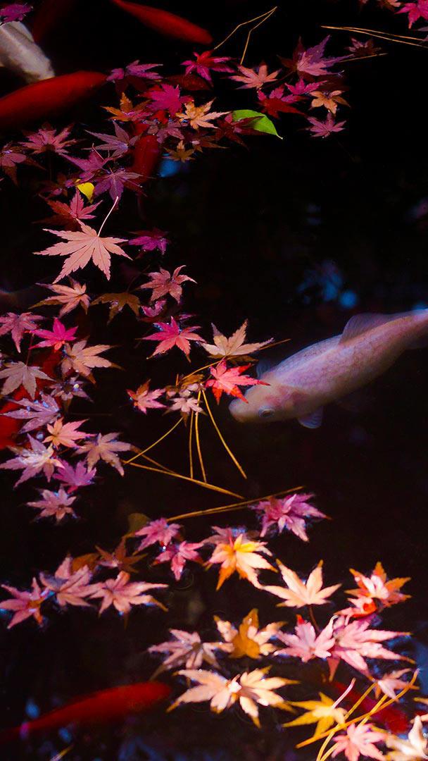 Today, we’re in Tokyo to see a colorful array of autumn leaves floating just above some goldfish. It’s a centuries-old tradition in Japan to wander through gardens and forests while taking in the show of colorful leaves. The Japanese call it "koyo" or "momiji-gari," terms which literally mean "hunting red leaves." The autumn colors of Japanese maples, ginkgoes, and other native trees first come to the northern Japanese island of Hokkaido, usually in early October, then move slowly southward until they reach the rest of the island nation. The leaf-peeping season is as popular in Japan as the springtime cherry blossom season—both phases of the year are rhapsodized over as symbols of the transient nature of life.
