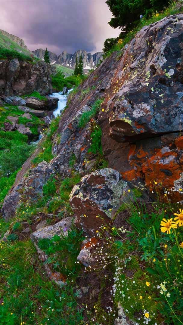 Songstress Dolly Parton once sang "wildflowers don"t care where they grow," but we gotta believe the wildflowers growing in Colorado"s American Basin, shown here, are pretty delighted with their surroundings. American Basin is in the San Juan Mountains in the southern part of the state, about a five-hour drive from Denver. Visitors here will find rocky cliffs, streams, unique rock formations, and some spectacular wildflowers. July and August are the best months to see the blooms—it"s the time of year when you"ll reliably spot the Rocky Mountain columbine (Colorado"s state flower), elephant"s head, Parry"s primrose, and marsh marigold. Bring us back a bouquet, all right?