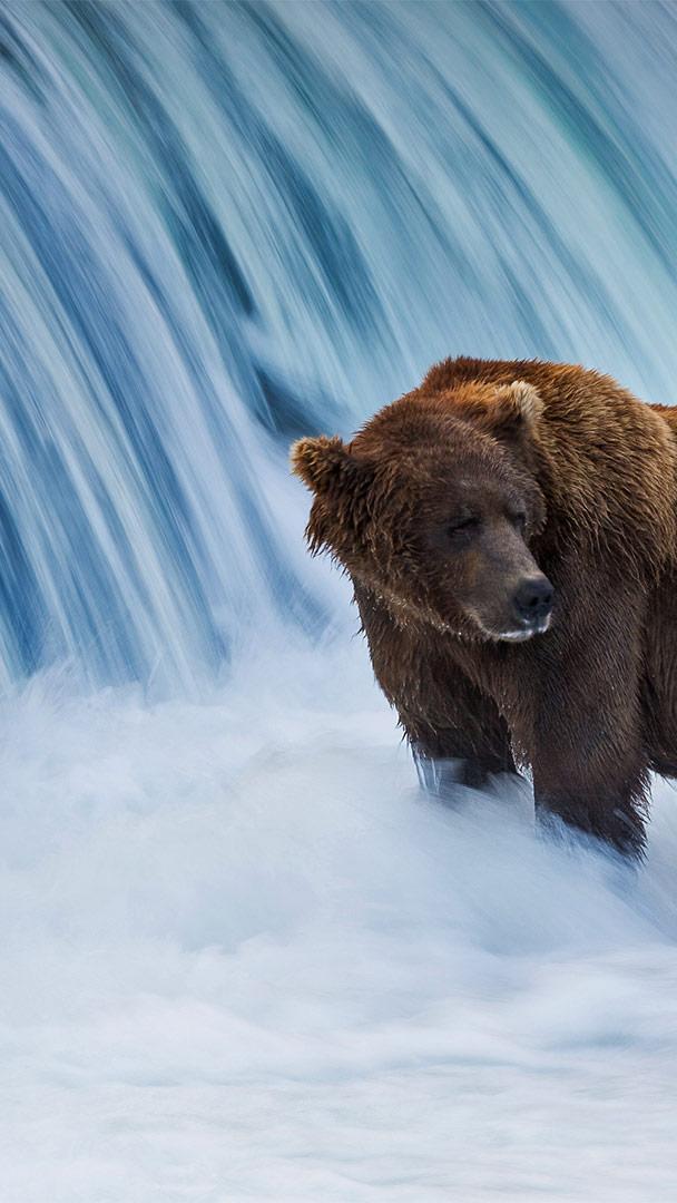 In Alaska"s Katmai National Park and Preserve, the "fattening" is under way. Brown bears like our homepage friend are bulking up for the long winter, gathering at Brooks Falls to feast on migrating salmon. The base of the falls is a prime fishing spot because it creates a temporary barrier to salmon jumping upstream. This makes the fish relatively easy pickings for hungry bears, who can catch up to 30 salmon a day.