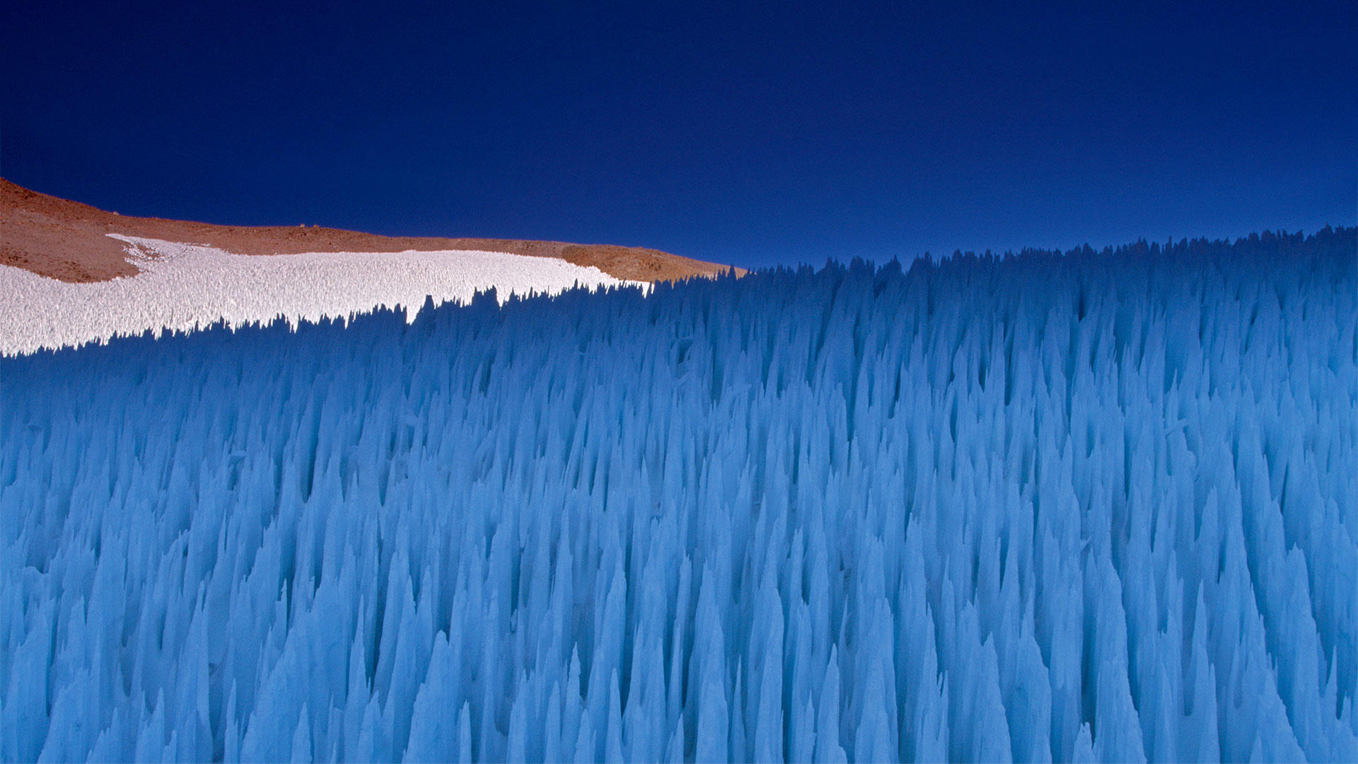 If these frozen formations were named by more literal minds, we might know them as simply "reverse icicles." But the Andes, including this mountain pass rising above Chile"s Atacama Desert, were mapped by poetically inclined Spanish explorers. They likened formations like these to a congregation of penitent parishioners kneeling at mass: hence the common name "penitentes" for such packed-snow pinnacles.