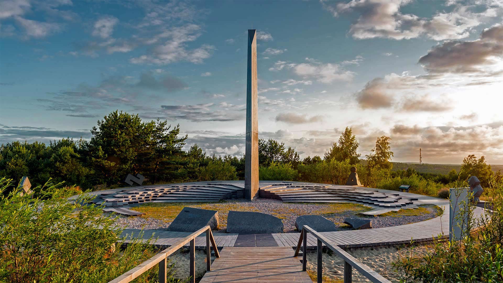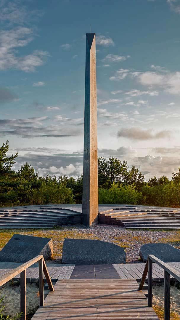 This 40-foot sundial stands atop the Parnidis Dune, one of the scenic highlights of the Curonian Spit, a UNESCO World Heritage Site shared by Lithuania and Russia. Built in 1995, the sundial was damaged by a hurricane a few years later and rebuilt in 2011. It accurately tells time by creating shadows on the steps, with notches for hours and half hours, as well as months, equinoxes, and solstices.