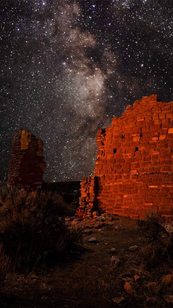 The bright sweep of the Milky Way is especially vivid amid the mesas, canyons, and prehistoric towers of Hovenweep National Monument. Straddling the southern Colorado-Utah border, Hovenweep is so remote that almost no artificial light disturbs the view of star-filled skies. The dazzling nightscapes are little different from those seen by the Ancestral Puebloans who built these towers. They were a farming culture who first settled in the area roughly 1,100 years ago. By the late 1200s they numbered around 2,500 people and had built these and other structures in six different villages. Archaeologists offer several theories to explain the use of the buildings. Some may have been defensive fortifications, storage areas, homes, or any combination of these. But researchers suggest that the tower called Hovenweep Castle, seen here, was almost certainly used as a celestial observatory.