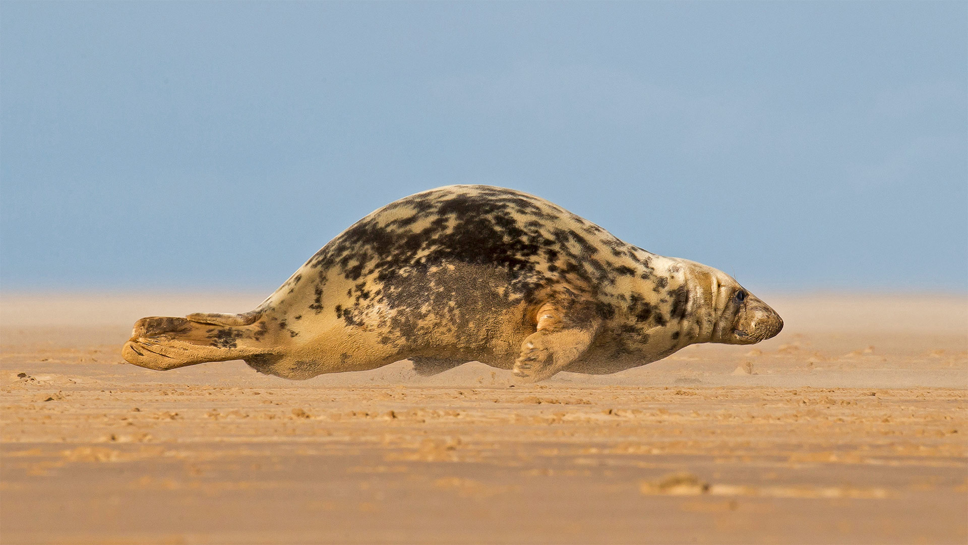Sprinting over the sands, this grey seal reminds us of Luke Skywalker"s zippy landspeeder vehicle from the first "Star Wars" flick. But unlike Luke, it"s not bound for Tosche Station to pick up some power converters—just to the sea for a fishy snack.