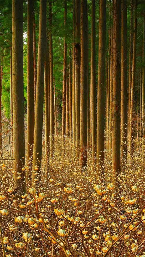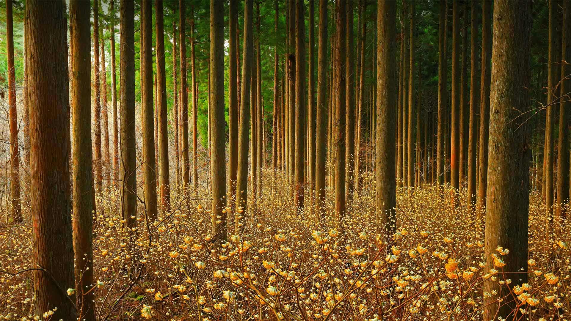 Stress seems to melt away when you gaze at this serene forest protecting the mitsumata blossoms below. While the flowering buds are beautiful in their natural state, the mitsumata shrub (Edgeworthia chrysantha) has so much more to offer. Originally brought from China to Japan by monks, the green plant is now a staple of Japanese papermaking and one of three principal ingredients in washi, traditional Japanese paper. No wonder, then, that it"s also known as the Oriental paperbush. Mitsumata washi is dense and holds ink well—it"s a favorite of artists and calligraphers—and sheets of mitsumata paper are also used in traditional shoji screens.