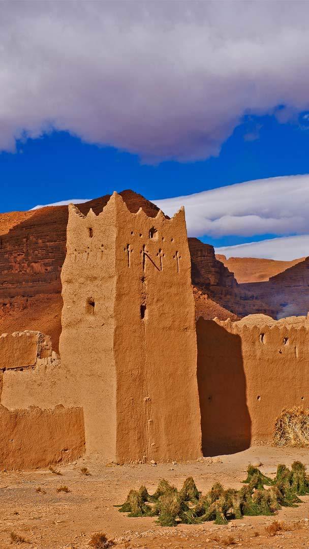 Today we"ve arrived at the walls of a kasbah in Tafilalet, home to the largest oasis in Morocco. Meaning "jug" in the language of the ancient Amazigh people (aka Berbers), Tafilalet was named for the pottery jars they filled with water from underground springs. After the first permanent settlement of the region, Sijilmassa, was founded in 757 CE, Tafilalet became a stopping point for caravans traveling from the Niger River to Tangier on the northern tip of Morocco and the gateway to Europe.