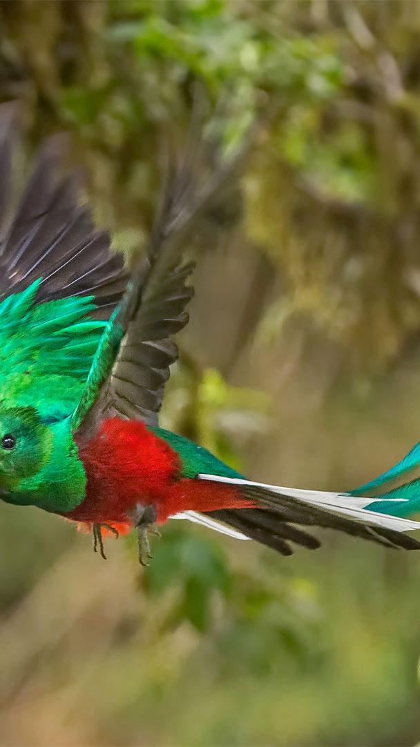 Both male and female resplendent quetzals have the bright body feathers, though the color on males is generally even brighter. During mating season, the males—like this one, photographed in Costa Rica—grow double tail feathers that usually measure longer than the bird’s body. In fact, some tail feathers can form a train up to three feet long. If you want to celebrate Draw a Bird Day today, maybe the resplendent quetzal will inspire you. Time to break out the crayons?