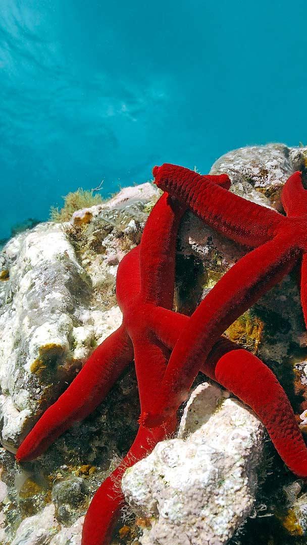 Mediterranean red sea stars © Hans Leijnse/Minden Pictures
