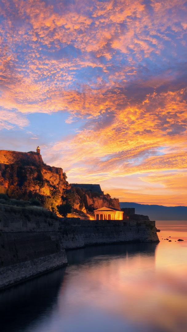 This imposing structure is the Old Fortress on the Greek island of Corfu, off the western coasts of Greece and Albania. Situated in a strategic location between the Ionian and Adriatic seas, Corfu became one of the most fortified places in Europe amid successive sieges by the Ottoman Empire. The island was ruled by the Republic of Venice for 400 years until the late 18th century, which built forts in Corfu"s Old Town to defend its maritime trading interests. They held off three Ottoman sieges in 1537, 1571, and 1716 but have been repaired, rebuilt, and added to over the centuries. The Old Fortress has witnessed the rise and fall of mighty empires for hundreds of years, from the tip of a rocky peninsula jutting into the sea. These days, however, it is home to the public library and Corfu"s archives.
