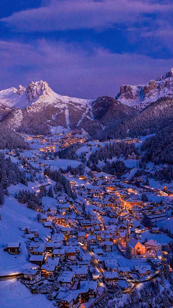 Val Gardena in Northern Italy is a popular destination for skiing, rock climbing, and woodcarving enthusiasts, which transforms into Christmas Valley at this time of year. Wooden huts open their doors to visitors, and a nostalgic cable car ride, each cabin adorned with twinkling fairy lights, travels above snow-covered slopes. During the 18th century, the valley became famous for its production of intricately carved wooden figurines, initially made to decorate Catholic churches. Among those creations, the peg wooden doll emerged as one of Val Gardena"s best-known products and is still being produced today.