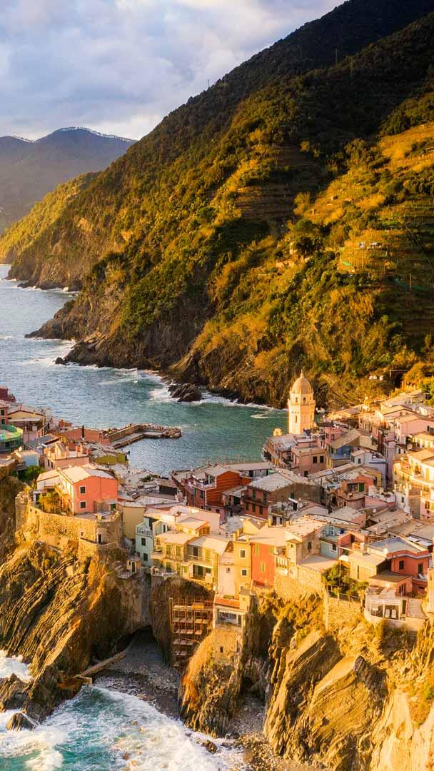 Perched on the rugged cliffs of the Italian Riviera, Vernazza is one of the five villages of the Cinque Terre area of northwestern Italy. Here, ancient buildings stand along the coastline of the Ligurian Sea, and life is filled with the hustle and bustle of the fishing industry. Vernazza got its name from the indigenous wine, "vernaccia," meaning "local" or "ours." One of the best-known monuments in the area is the medieval Doria Castle, built as a defensive fortress to protect the village from frequent pirate attacks. Thanks to the construction of the Genoa–La Spezia rail line in the 19th century, the village became more accessible by land. The car-free cobblestone streets are ideal for walking around. While here, you might want to visit the Chapel of Santa Marta and the Sanctuary of Madonna di Reggio. Vernazza is sometimes described as the pearl of the Cinque Terre with its natural port, colorful houses, and green terraces overlooking a sparkling sea.