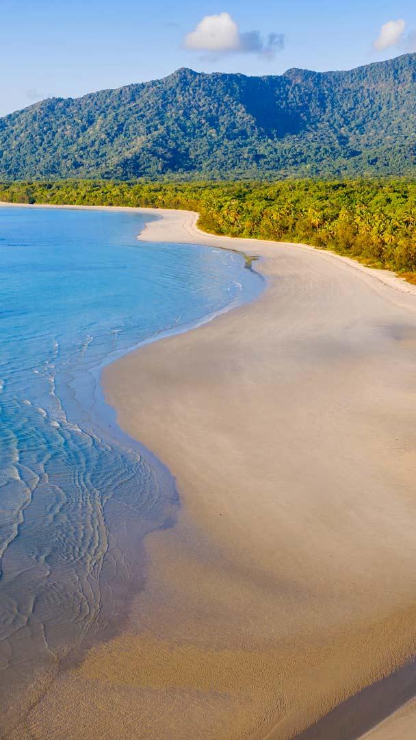 Welcome to a land where greenery meets the endless blue. On the North Queensland coast of Australia, encircled by dense foliage, is Noah Beach. A fascinating blend of two ecosystems, here the Daintree Rainforest seamlessly meets the azure waters of the Coral Sea. This secluded area of the Daintree National Park boasts a stretch of soft, golden sands while elsewhere there are towering trees, lush ferns, and other plant species unique to the area. The Daintree is believed to have been around for up to 180 million years, making it the oldest tropical rainforest in the world. It is also Australia"s largest uninterrupted stretch of tropical rainforest and home to rare species like Bennett"s tree-kangaroo, found nowhere else on our planet.