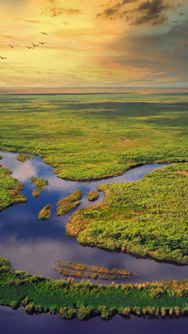 Wouldn"t it be great to see our reflection from above in this vast expanse of water? Everglades National Park, located in Florida, is the largest tropical wilderness in the United States, spanning more than 1.5 million acres. It protects the southern 20% of the original Everglades and is home to numerous rare and endangered species, including the Florida panther, American crocodile, and West Indian manatee. Often referred to as "River of Grass," the park"s unique ecosystem, fed by a slow-moving river from Lake Okeechobee to Florida Bay, is a significant breeding ground for tropical wading birds. Everglades National Park is not only a national treasure but also an international one, recognized as a World Heritage Site, an International Biosphere Reserve, and a Wetland of International Importance.